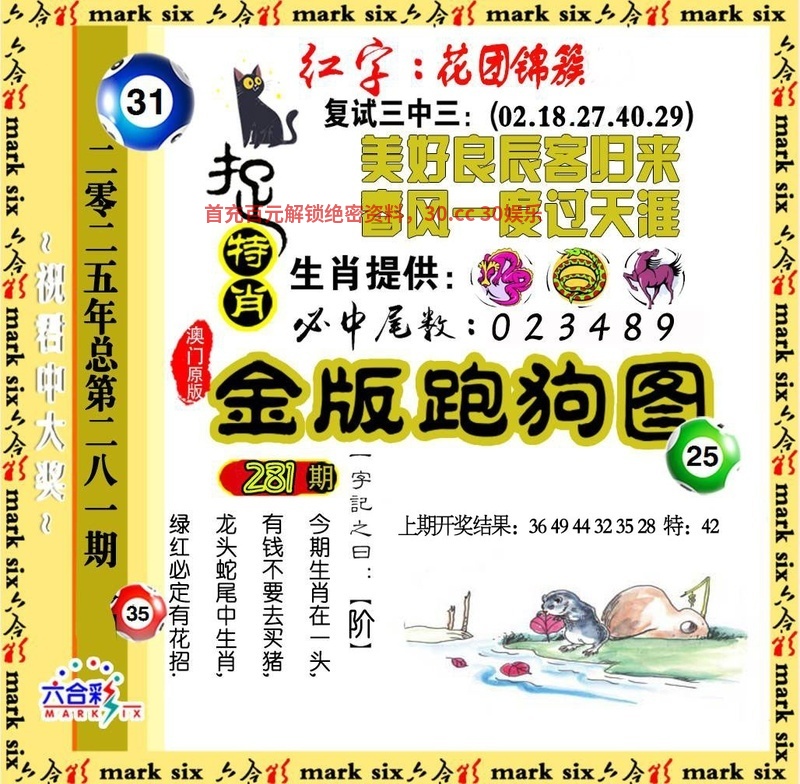 280期:三季中特【冬春夏】开:鼠42准 |