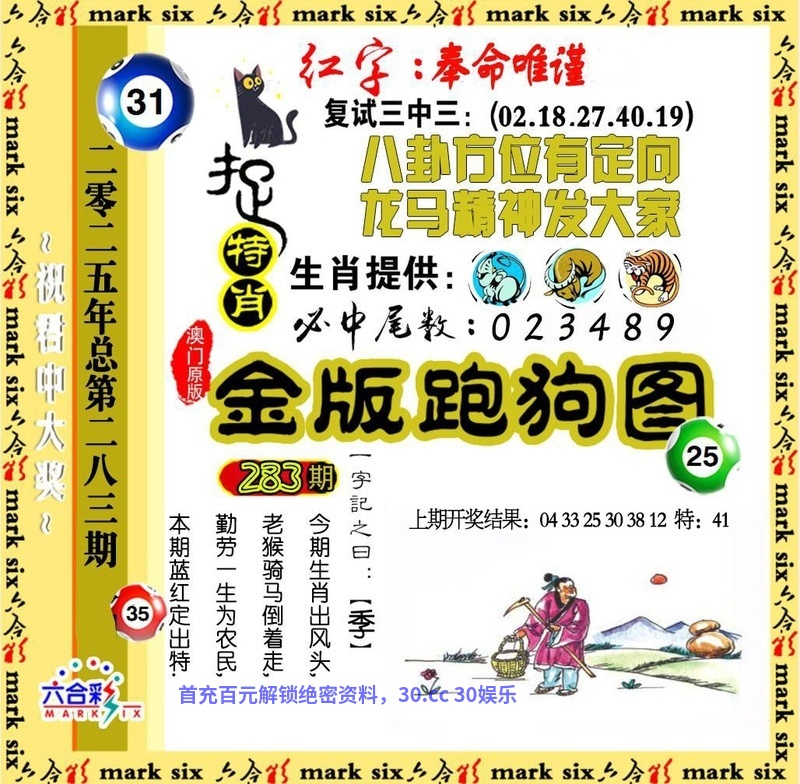 281期:阴阳两肖【阳肖+马蛇】开:羊47准 |